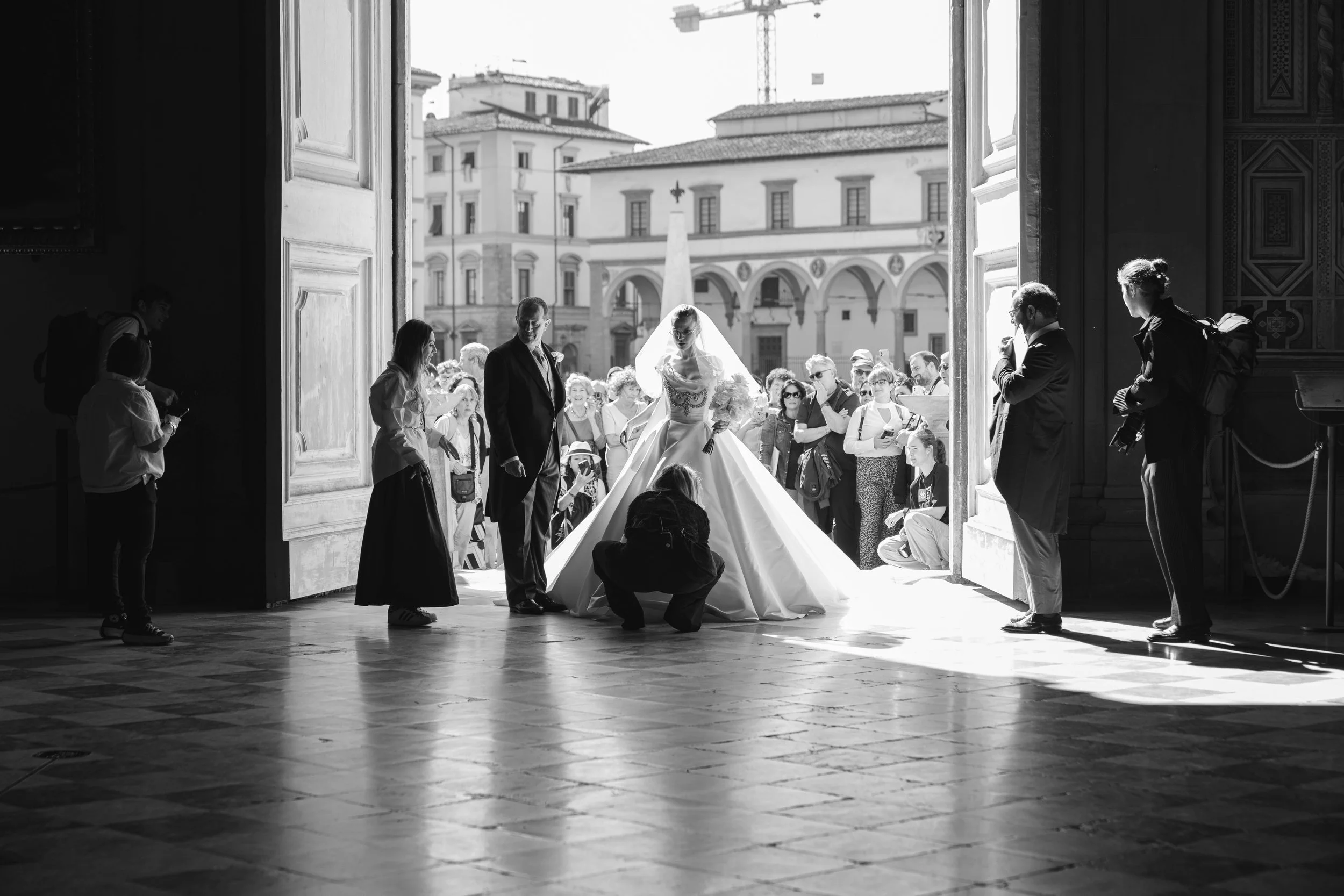 A real Event, not a “simple” wedding. More than 300 guests, the ceremony inside one of the most beautiful churches in Florence, the party inside the cloister of Santa Maria Novella, a place with more than 800 years of history, a wonderful couple uniting on a day that focused the attention of all Florentines.